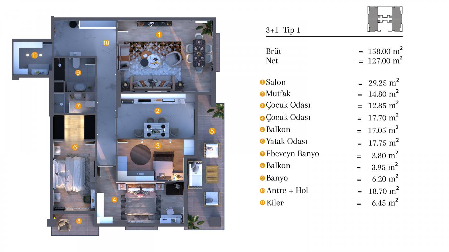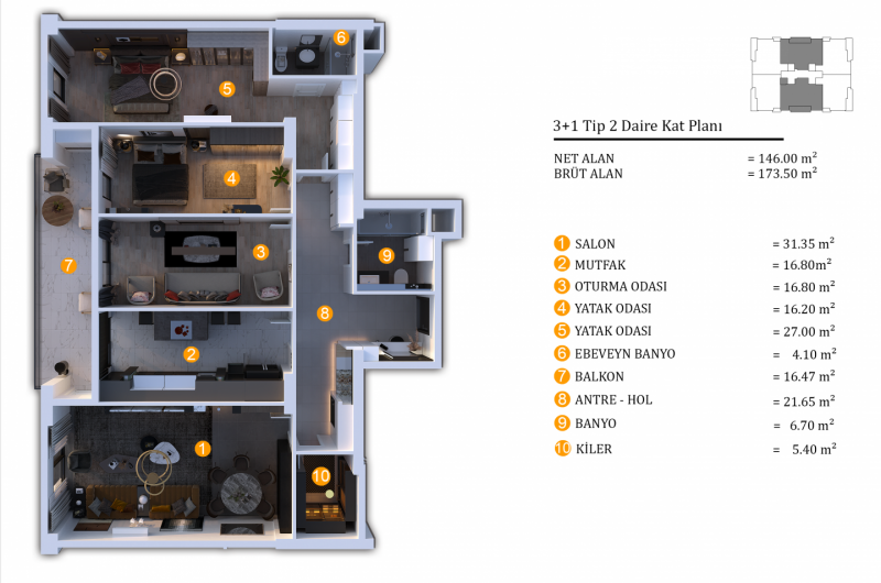 2+1 daire, 3+1 daire ve villa seçenekleri, avantajlı konumu ve imkanları ile hayallerinizi ertelemeden yaşamaya başlayın.